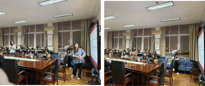 随后,两位老师对此次学术沙龙活动做出了点评。此次的活动引发了两位老师极大地讨论热情。首先,武祯妮老师对汇报小组的讲述提出表扬,她指出,本次论文选题是具有前沿性和研究意义的,为理解碳价格对企业绿色投资行为的影响提供了新的视角。此外,理论模型与实证模型之间展现出了很好的契合度,这是一个值得肯定的思路。在汇报技巧方面,武老师特别指出,同学汇报的时候要放慢语速,并更多地用自己的理解进行讲解。范瑞老师也对汇报小组给予了肯定,认为整体讲述过程逻辑清晰流畅,对于文章结构的梳理精准清晰。范瑞老师指出,创新应建立在已有的基础上,自己随意构建的新模型可能缺乏信服力,同时,拥有逻辑严谨的写作能力也是至关重要的,建议大家在写作过程中可以对语言进行润色以提升表达效果。老师还鼓励大家抓住机会,在公共场合大方地展现自己的能力,通过公开展示来锻炼和提升自己。