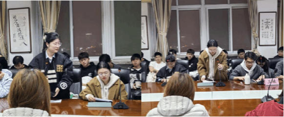 随后,两位指导教师对本次汇报进行了点评与总结。高侯平老师对选题的拓展性予以肯定,建议在后续研究中进一步加强相关文献的关联分析,并从保险基金与银行投资差异等角度深化探讨。他还就论文写作提出建议,强调应从国家政策背景、文献梳理、理论模型与假设构建等方面系统推进研究。卞小娇老师则从专业角度进行了补充点评,肯定两位同学的研究逻辑,并鼓励同学们在论文写作中保持批判性思维。她指出论文题目与参考文献部分尚有改进空间,倡导大家善用数据库开展数据检索、分析与验证,以提升科研效率。