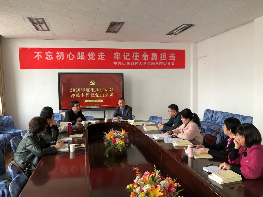 会议首先开展集中学习,全体党员深入学习“生命至上、举国同心、舍生忘死、尊重科学、命运与共的伟大抗疫精神”,结合实际探讨在日常工作中如何发扬伟大抗疫精神,做好疫情防控常态化下的教学与科研工作。随后,支部书记崔婕对2020年的支部工作进行汇报,提出在疫情影响下支部工作主要采取“线上+线下”融合模式,积极发挥网络技术、加强学习强国、三晋先锋APP的学习功能,圆满完成了各项支部工作,但在学习方式、组织活动形式上还应进一步丰富。接下来,支部举行民主评议工作,每位党员根据自身情况开展深刻的自我批评,其他同志也从支部建设、理论学习、科研工作、教学工作等方面对每位党员提出批评与建议,并进行民主自评与互评。最后,公司党委副书记刘维奇从公司发展规划出发,对金融工程教研室支部建设工作提出畅想与建议,金融工程教研室2020年度组织民主生活会暨民主评议党员会议在全体党员的热烈讨论中落下帷幕。