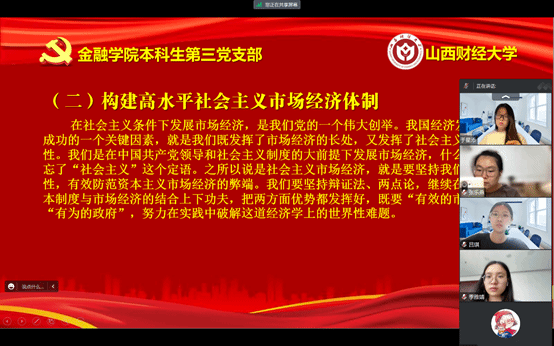 概要:继上次本科生第三党支部预备党员原红丹带领大家学习《坚持以人民为中心》后,在7月16日进行了第五章的学习,本章的主要内容是“推动经济高质量发展”,本章由本科生第三党支部预备党员吕琪带领大家学习,本科生第三党支部邱马玥主持并总结发言。