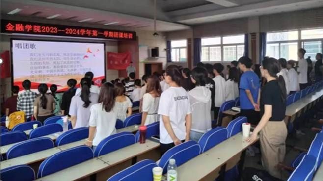 团课伊始,全体成员齐唱团歌,伴随着音乐,同学们激情澎湃、热情高涨地唱出了勇担重任的信念,唱出了努力成为新时代有为青年的决心。