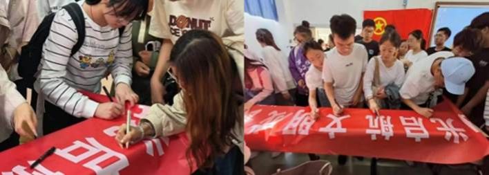 课后,同学们积极参加了永利集团3044am“阳光启航,文明成长”主题活动,在横幅上认真签下自己的名字,勉励自己学礼知礼、修身明德,不断增强文明意识,加强自己作为青年团员的道德建设和行为塑造。红旗飘扬,青春正好,一笔一划里写下的都是同学们对青春的庄严承诺。