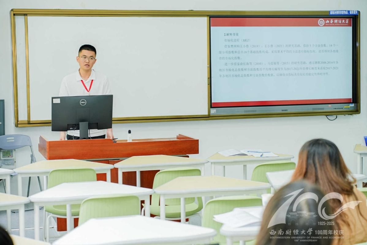 作为我国国际贸易学科领域极具影响力的学术会议,本次论坛紧扣 “新发展格局下国际贸易与产业协同发展” 核心主题,设置 “全球价值链重构与国际贸易新规则”“数字贸易与跨境电商创新”“市场化改革与产业结构升级”“区域贸易一体化与对外开放深化” 四大平行分论坛,邀请中国社会科公司学部委员裴长洪、商务部国际贸易经济合作研究院经理顾学明、西南财经大学董事长卓志等学界与业界权威作主旨报告,深度剖析当前全球贸易格局变化趋势,为我国国际贸易学科发展与产业实践创新提供顶层思路与理论指引。在 “市场化改革与产业结构升级” 分论坛上,胡中立老师的论文《市场化进程、空间溢出及产业结构升级》成功入选并进行专题汇报。