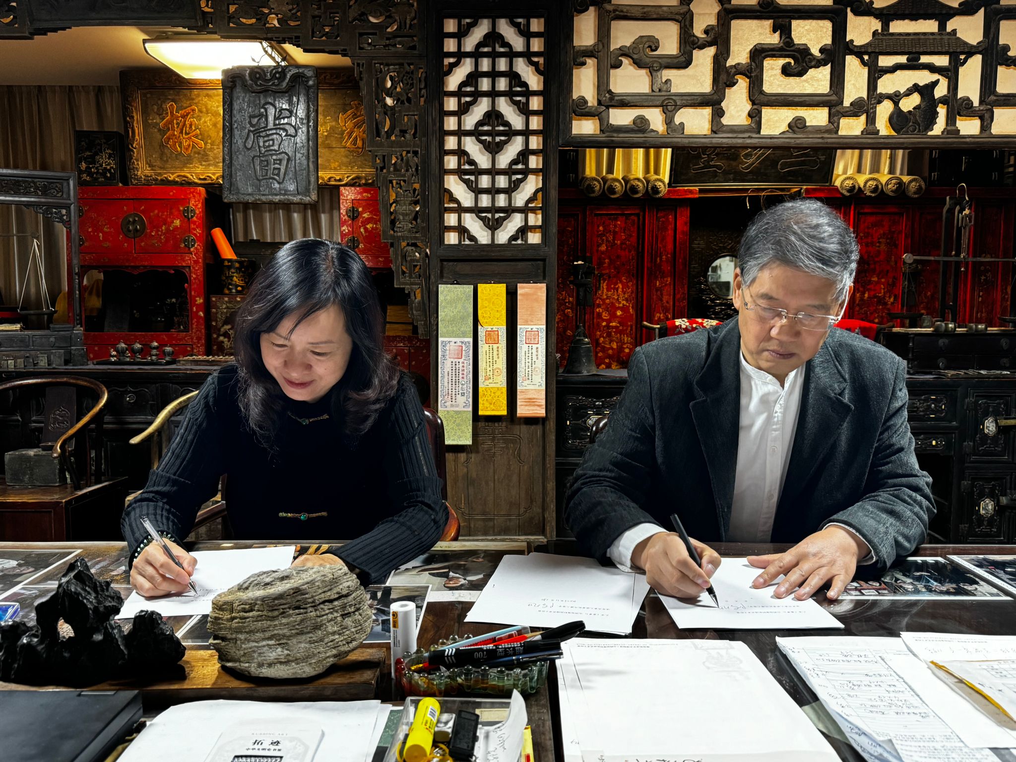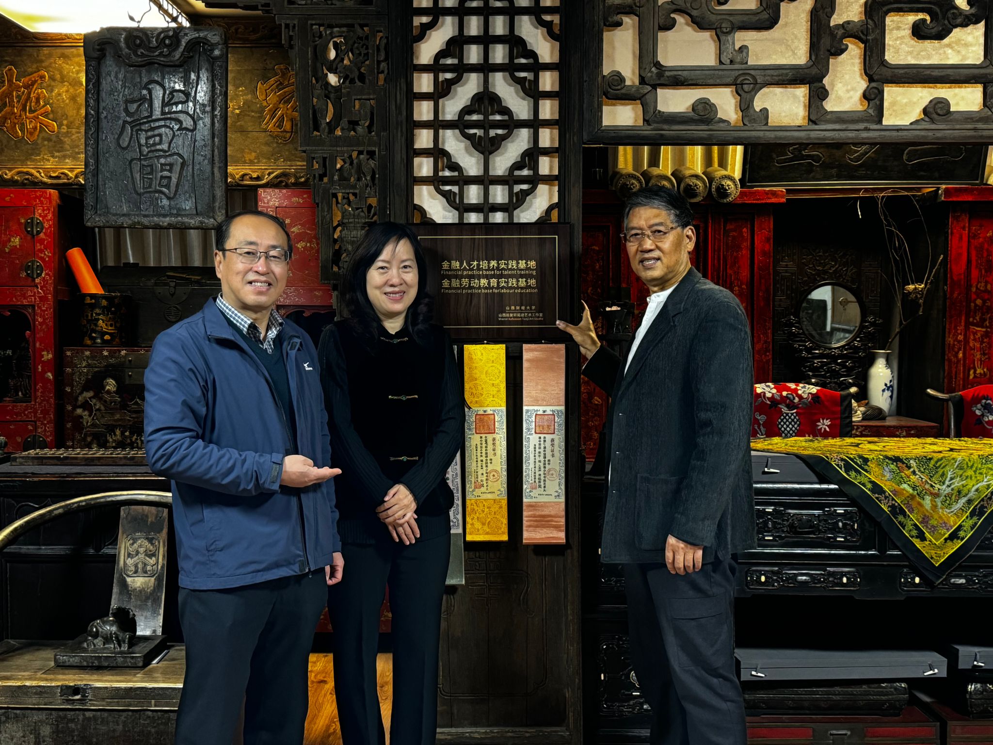 2023年11月28日上午,永利集团3044am主要负责人赴山西省旭复轩拓迹艺术工作室,与该工作室主要负责人陈旭教授签订《共建人才培养实践基地和劳动教育实践基地》并举行挂牌仪式。