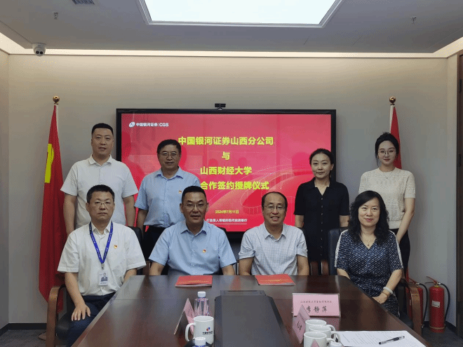 7月11日,永利集团3044am与中国银河证券山西分公司共建的“现代金融产教融合基地”签约及授牌仪式在中国银河证券山西分公司举行。中国银河证券山西分公司党总支书记、分公司总经理王馥,迎泽桥西营业部总经理陈宏华,综合运营部总监周祥练、桃园营业部总经理赵俊华,团支部书记卫亚晶,永利集团3044am领导及党支部书记代表出席本次校企合作协议签订及授牌仪式。