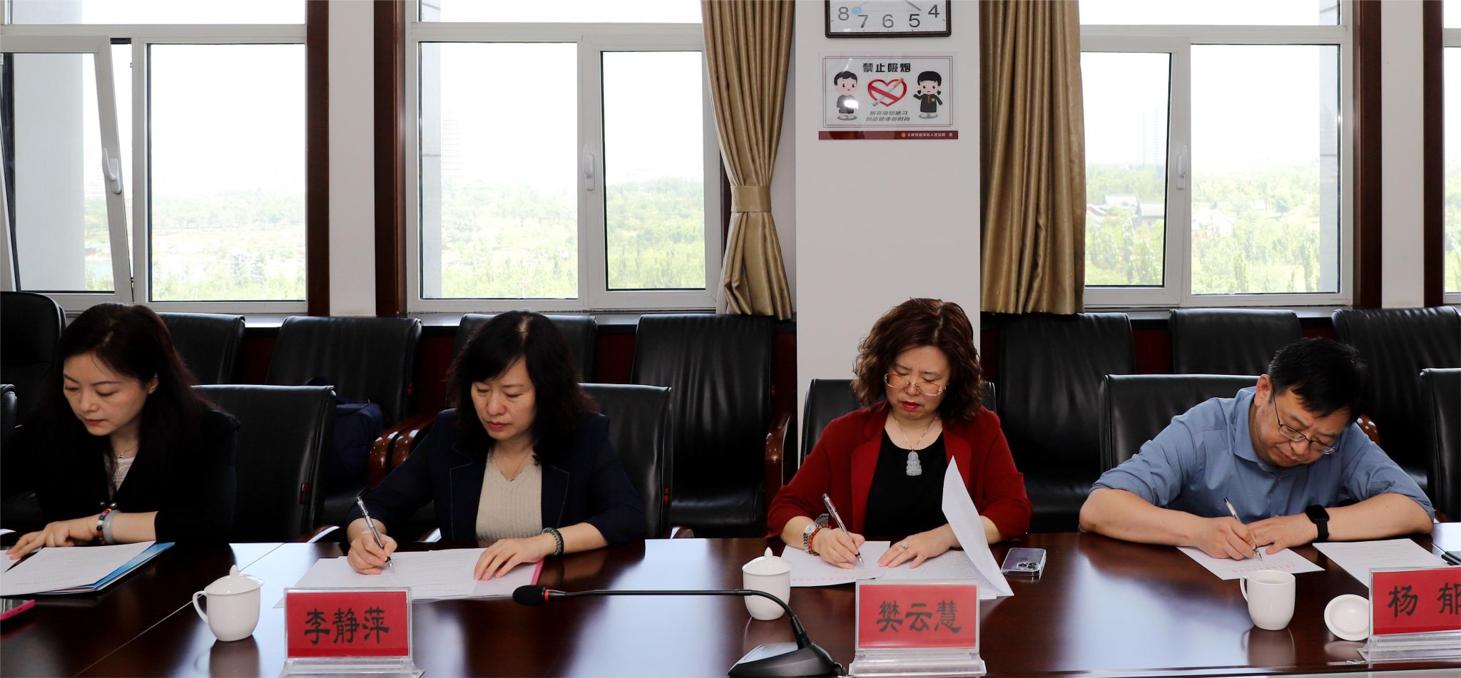 迎泽区人民法公司党组成员、副经理王钢与李静萍、樊云慧共同签署《数字金融法治研究基地共建协议》,与永利集团3044am高质量发展政策与法治研究院经理杨郁签署《研究基地共建协议》并举行揭牌仪式。