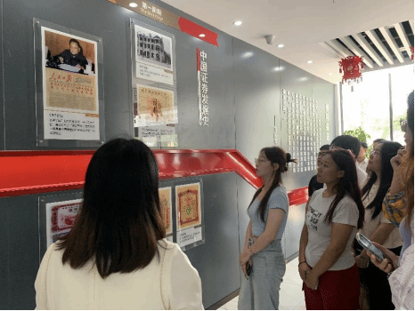 在第一个环节中,田坤老师带领我们参观了山西证券投资者教育基地的文化墙,回顾了我国证券市场发展的四个阶段,介绍了山西特色金融文化和晋商精神,简要介绍了山西票号的兴起和衰落,以及山西证券的基本情况、经营理念及核心价值观。
