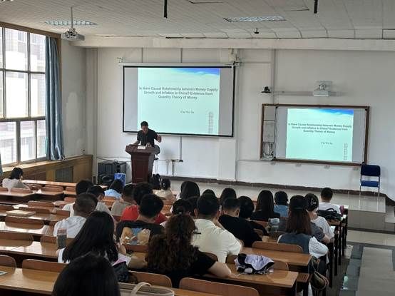 讲座中苏教授给同学们讲述了一种关于发表论文的万能方法:拔靴滚动因果检验模型。苏教授以一篇名为《货币数量与通货膨胀》的论文开始讲述,表明传统的理论认为货币数量增加一般会引起通货膨胀,但在某些特殊情况下并非如此,这与传统的货币数量论并不相符,这是因为在时间序列中发生很多未知外来冲击,导致原来全样本估计错误,因而用子样本抽验分析便可以得到各个时间点的相互影响关系,这就是拔靴滚动因果检验模型的优势所在。
