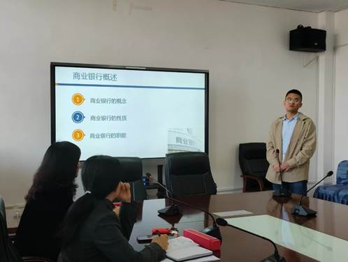 本期活动,首先由金融理论教研室新入职年轻教师胡中立进行授课展示。胡中立选择了《金融学》中商业银行的相关知识点,用15分钟的时间进行了授课展示。