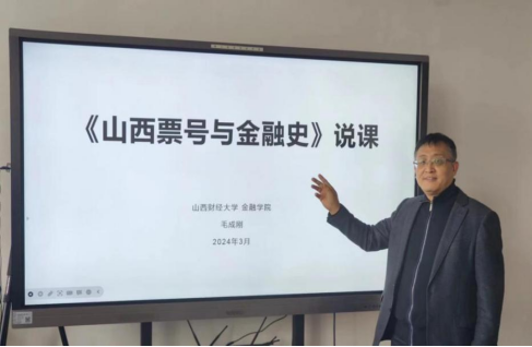 按照周周315的安排本周起由申报2024年省级一流课程的教师进行说课。本周说课的是银行管理教研室副主任毛成刚老师,他说课的内容是《山西票号与金融史》,主要从课程设置、教学团队、教材分析、教学方法、教学设计、教学特色和创新这六个方面进行说课。说课内容呈现了本课程较强的中国特色和山西地方特色,在本校孔祥毅、黄鉴辉等老一辈取得的丰富资料整理和研究成果基础上,新一代教师又对教学材料的内容进行了全面的整合,自编了以山西票号与近代金融发展为主要学习内容的讲义。目前核心教学团队由毛成刚、孙长青、张亚兰三位老师组成,教学团队积累了教学资料,采取了启发式、研讨式等教学方法。今后五年将围绕OBE教学理念,培养员工形成金融史学习和研究能力。