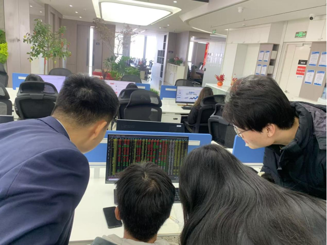 在具体的入门基础操作了解后,我们跟随来到了业务部的操作地点,每位同学分机就坐,耐心倾听由业务部工作人员石凯老师与李夏堃老师分别带来的《三角整理形态》和《仓量价》的实操分析,后过使用软件内的数据面板为同学们进行了完整具体的数据研读,在交流中思维不断碰撞,同学们的热情也不断被点燃,收获满满,践学践能,满载而归!